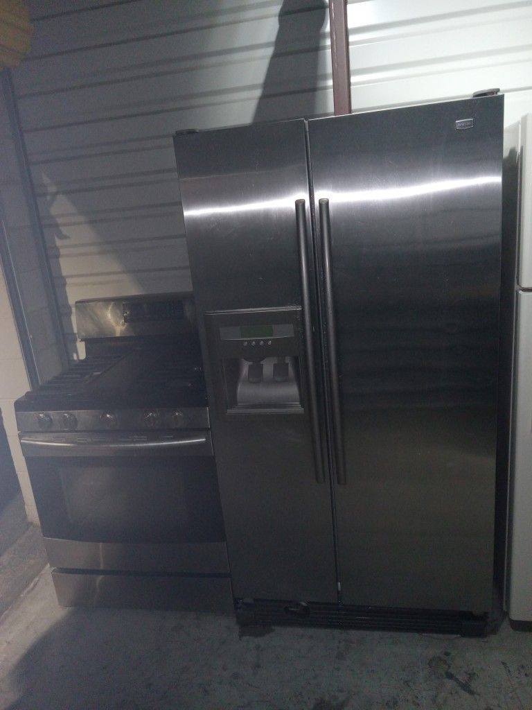 Fridge with ice and water stove 5 burner good condition with guarantees and deliveries available