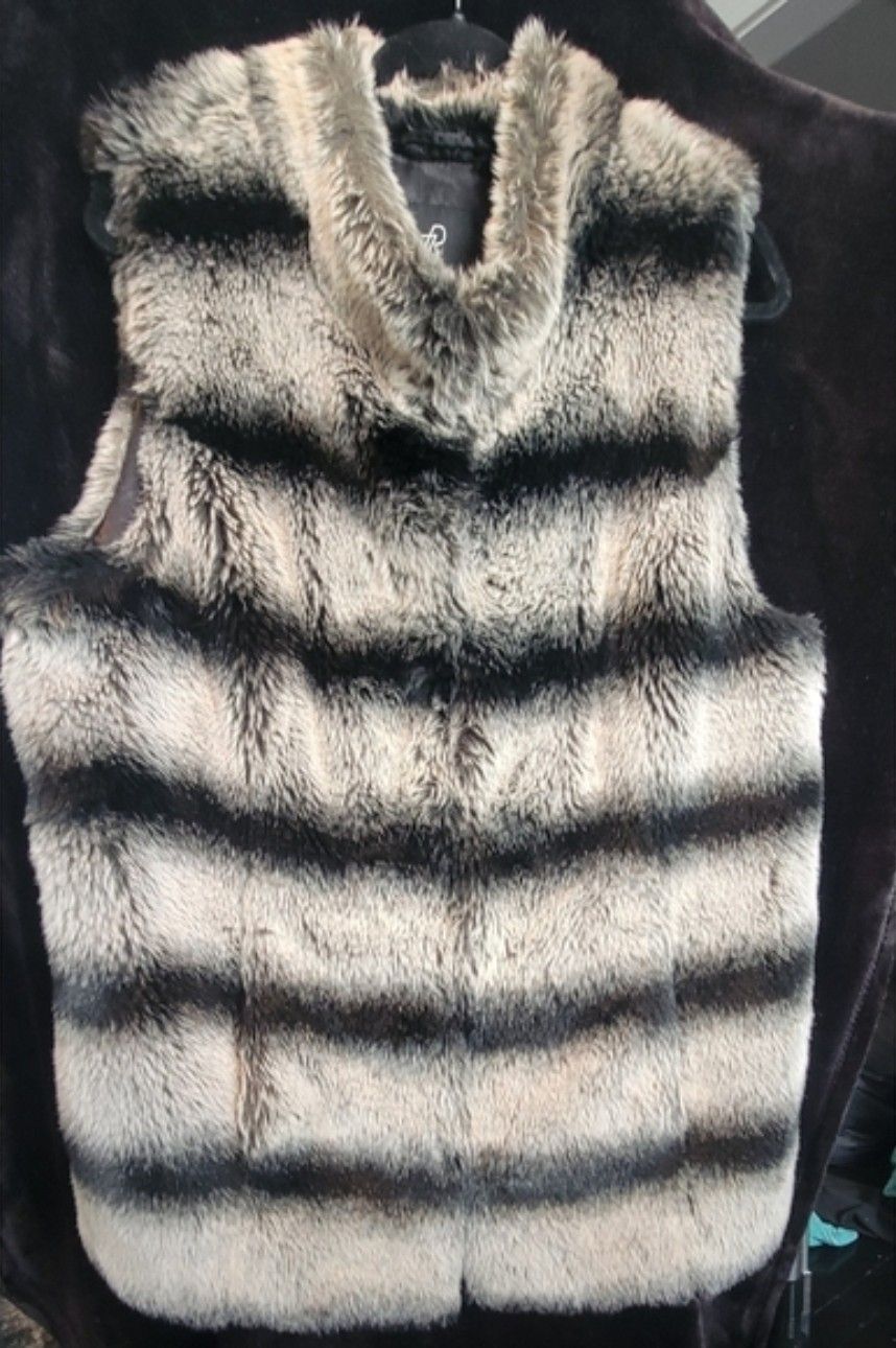 Rachel Zoe Black and Gray Striped Teddy Jacket