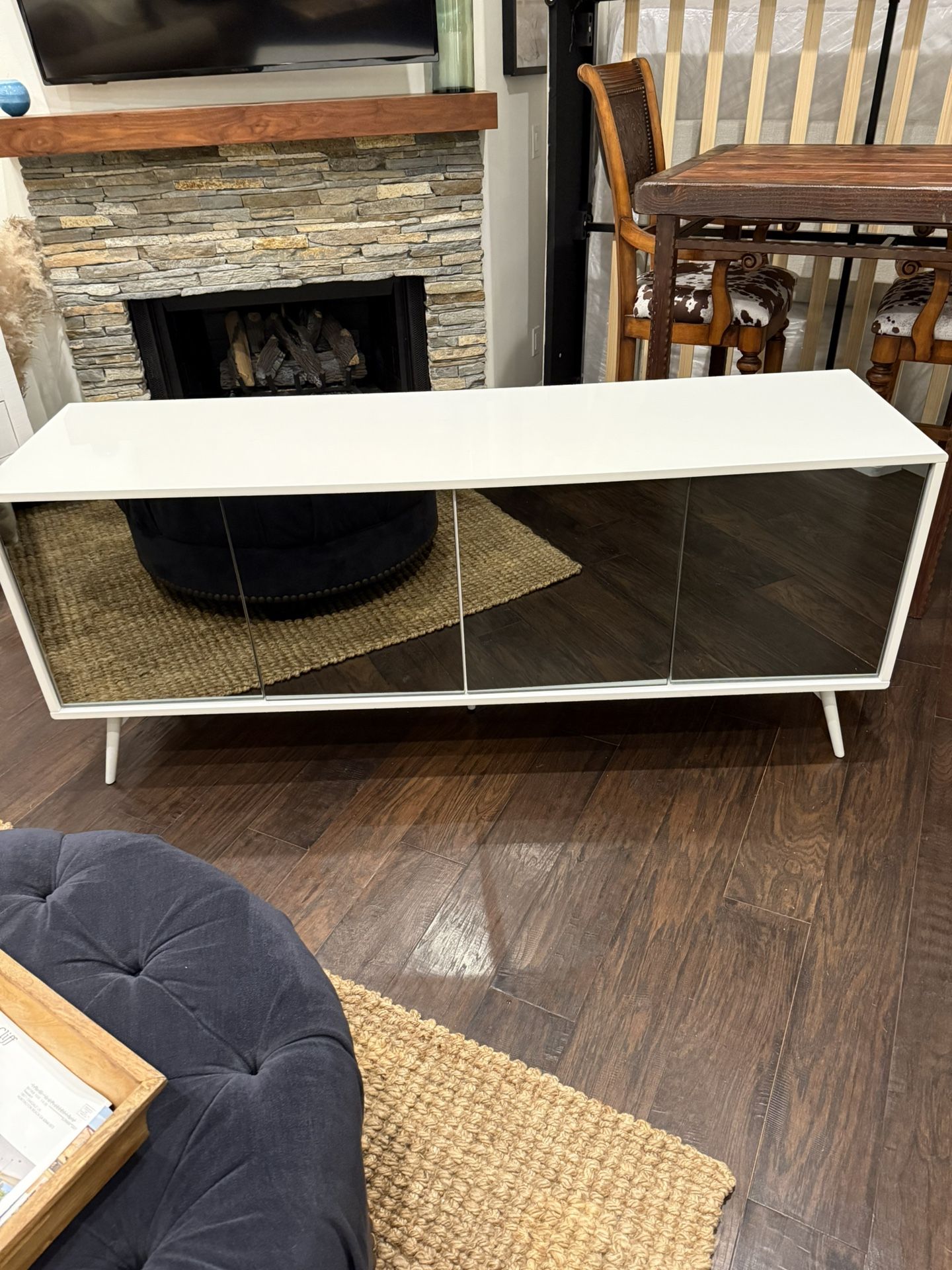 TV Stand (white) from Madani Furniture - W: 71” x D: 19 3/4” x H: 29 3/4” - 40 lbs - plenty of shelving space for storage