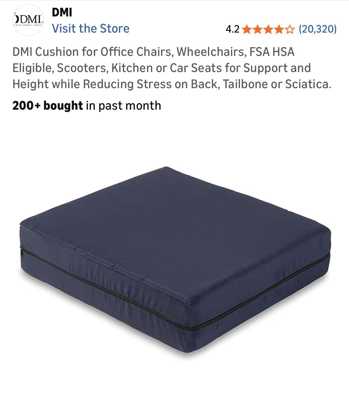 4” DMI Cushion for Office Chairs, , Scooters Kitchen Car Support/Height while Reducing Stress on Back paid $30 for it and can’t use it New.