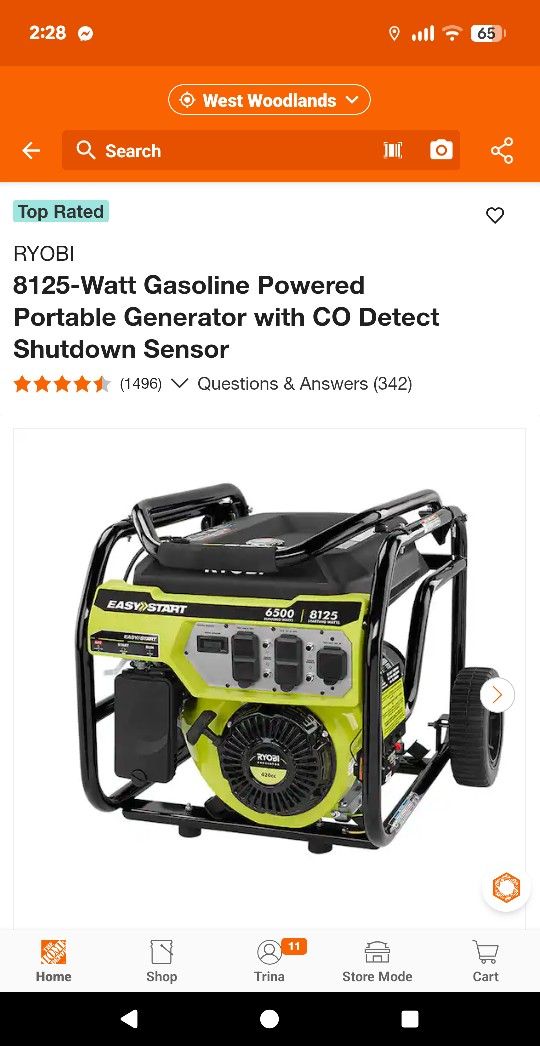Ryobi 6500 Watt Easy Start Generator New In Box Never Used