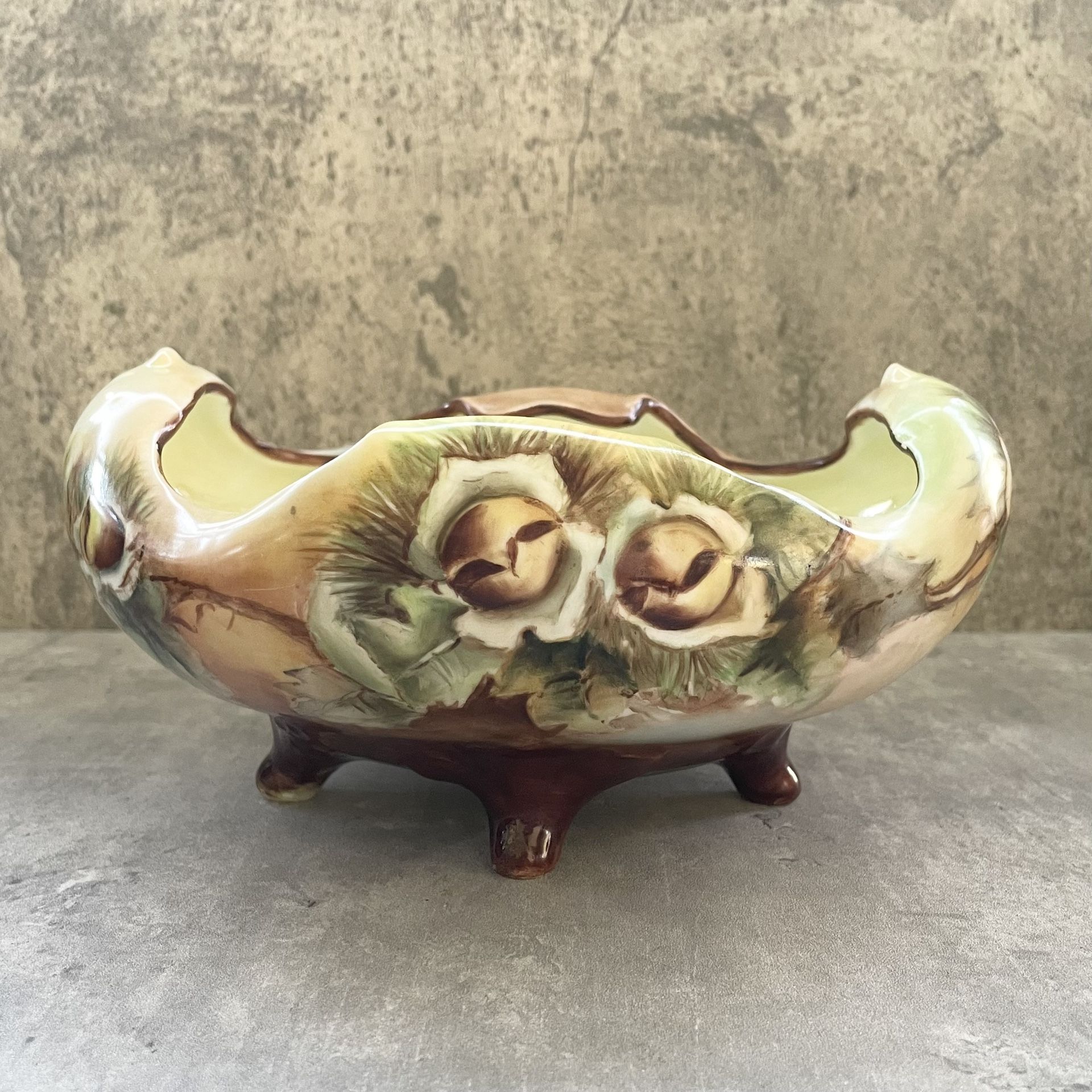 Antique Rosenthal Bavaria c1891-c1906 Beige, chestnut hand painted, footed, scalloped edge 8.75” x 6.75” x 4”H Excellent condition, no crack or chip