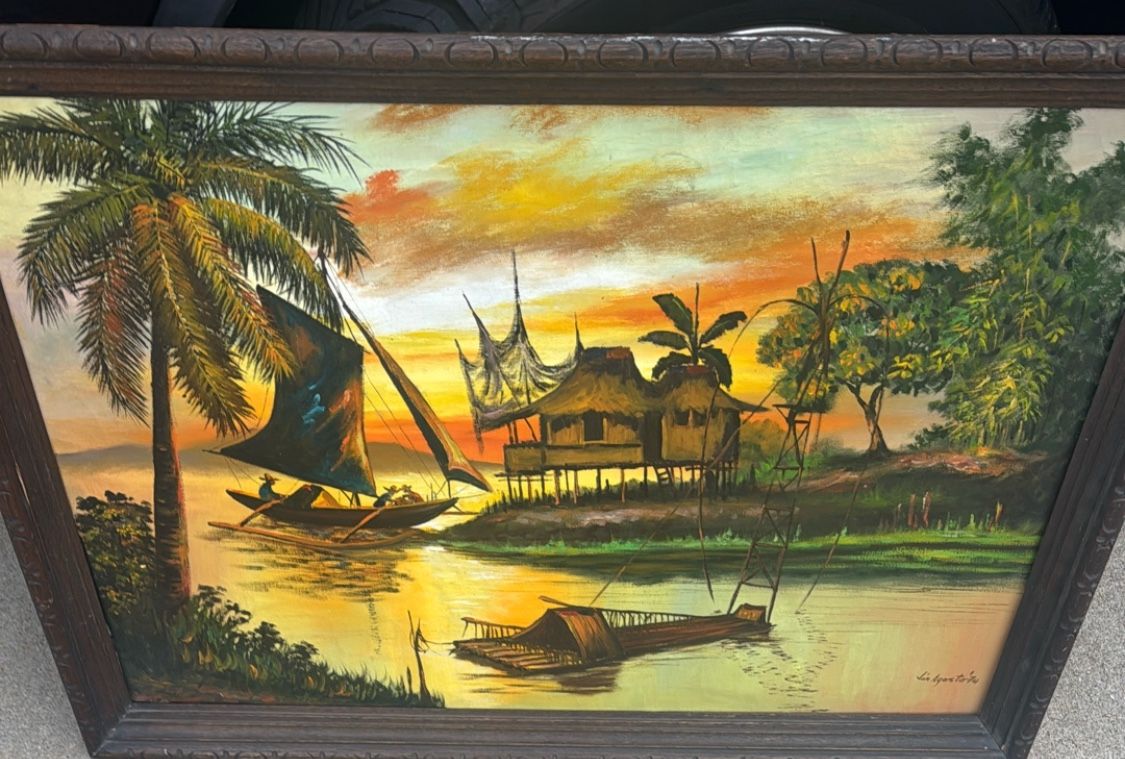Oil painting sunset signed by artist