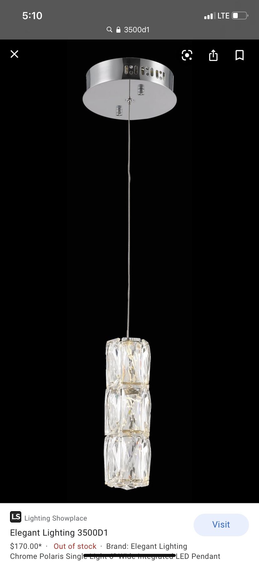 NEW CRYSTAL PENDANT 6”diameter by 9” in height 3k color temperature, 600 lumens, dimmable.