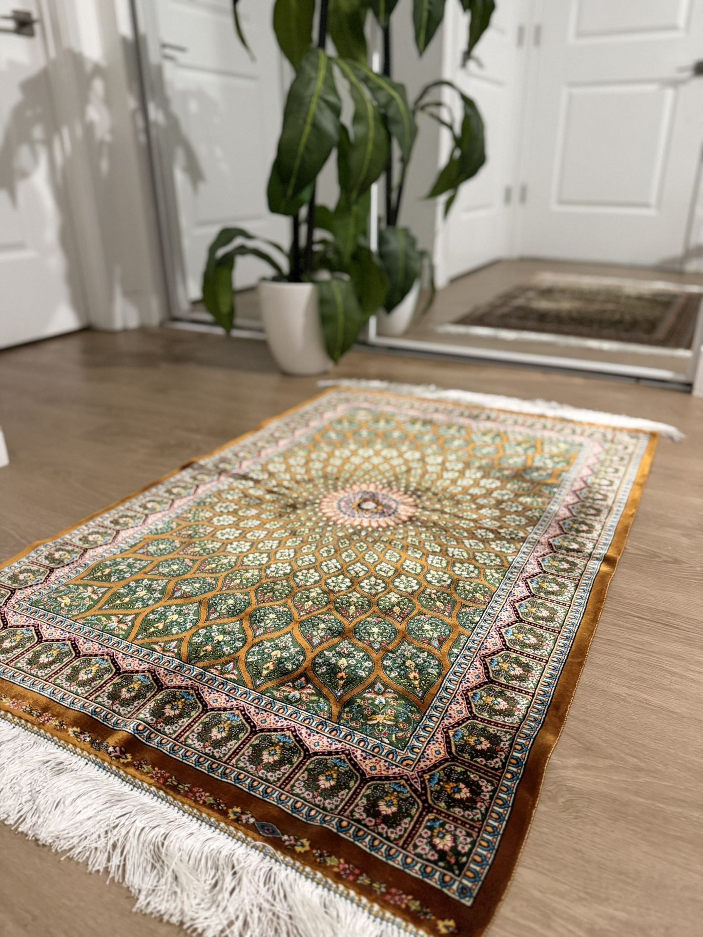 These silk carpets are very soft and beautiful, available in any color and any size. 3.94=2.62 Fit