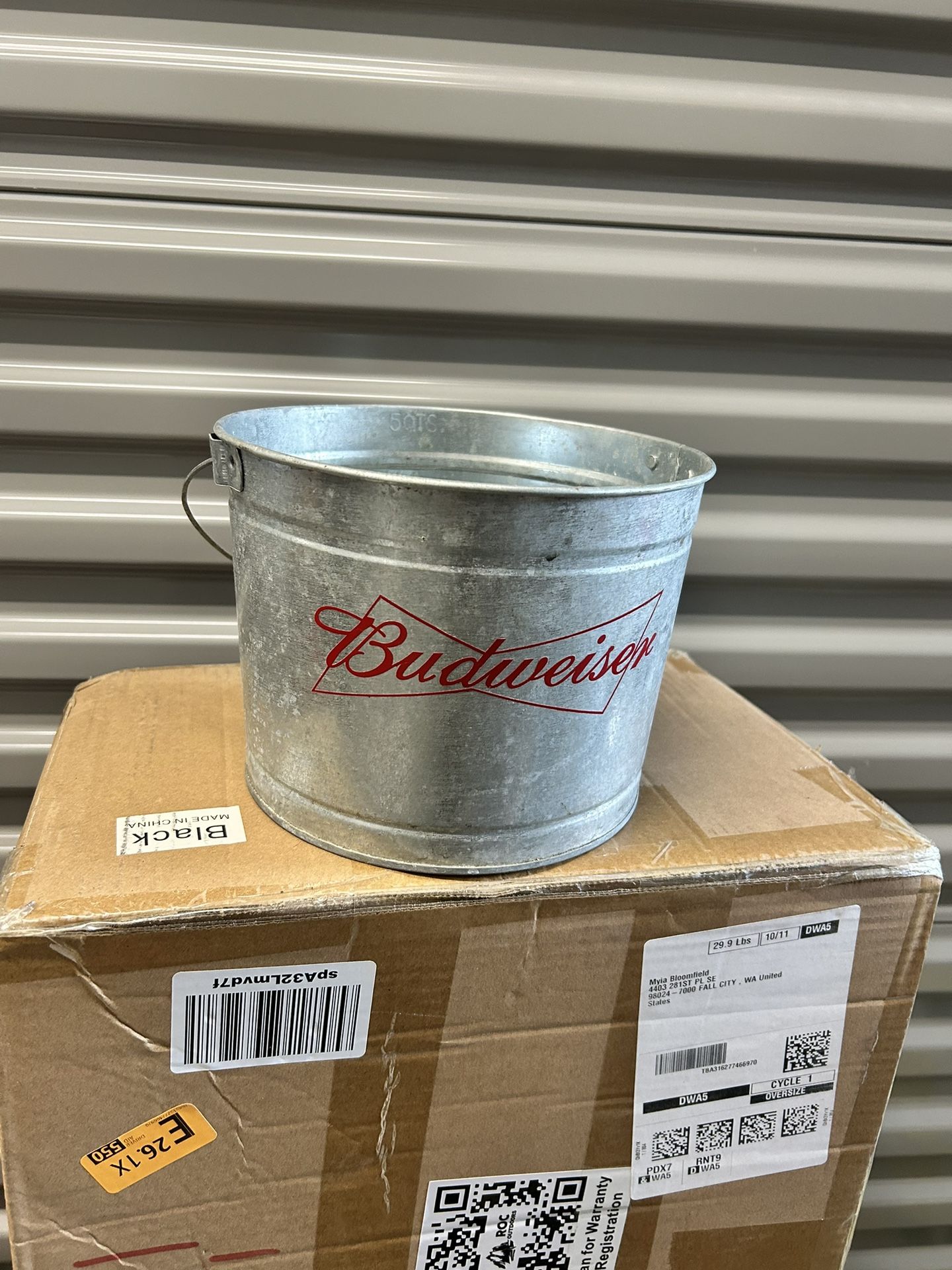 Selling my metal tin bucket. Has Budweiser on one side and Bud Light logo on the opposite.