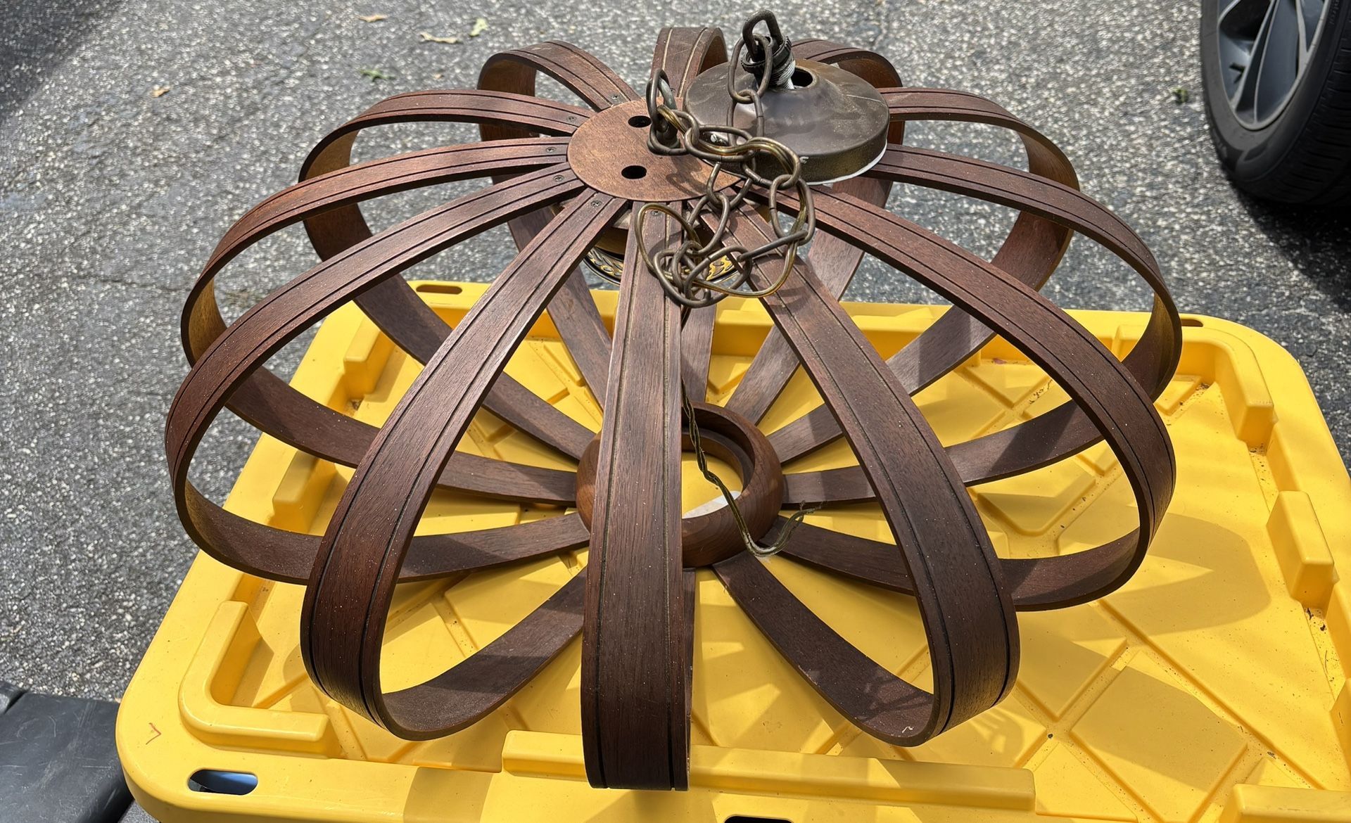 This a very large antique wood fixture see serial number in post from the original Feldman & co of California Dimensions 16/17 inches top to bottom & 78 inches around and 32 inches across