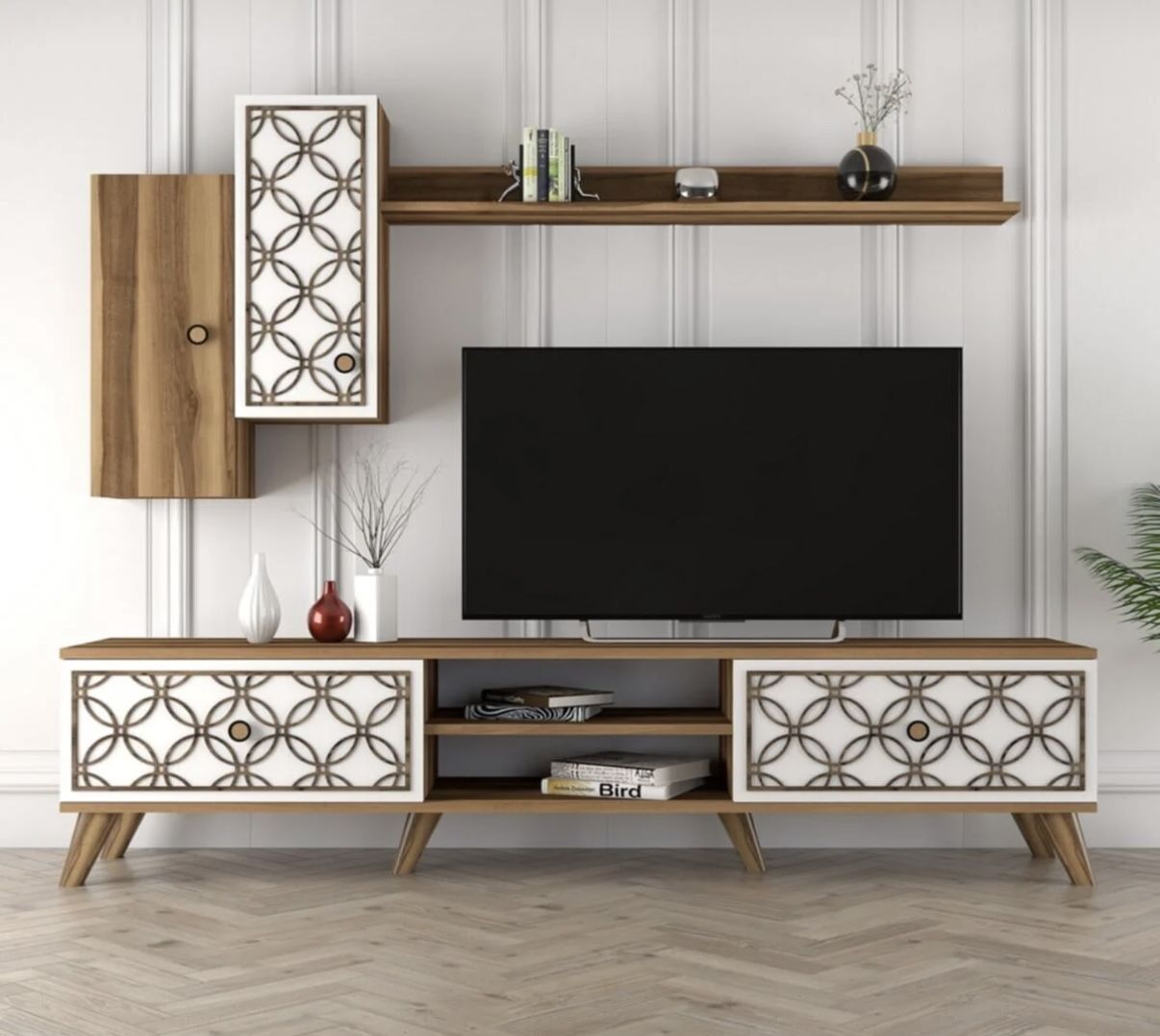 TV Stand – Good Condition TV stand in good condition. Brown and white design with a modern look. Sturdy and stable, no major damage. Works great for living room or bedroom. Message me if interested. You cab find the sizes at pictures.