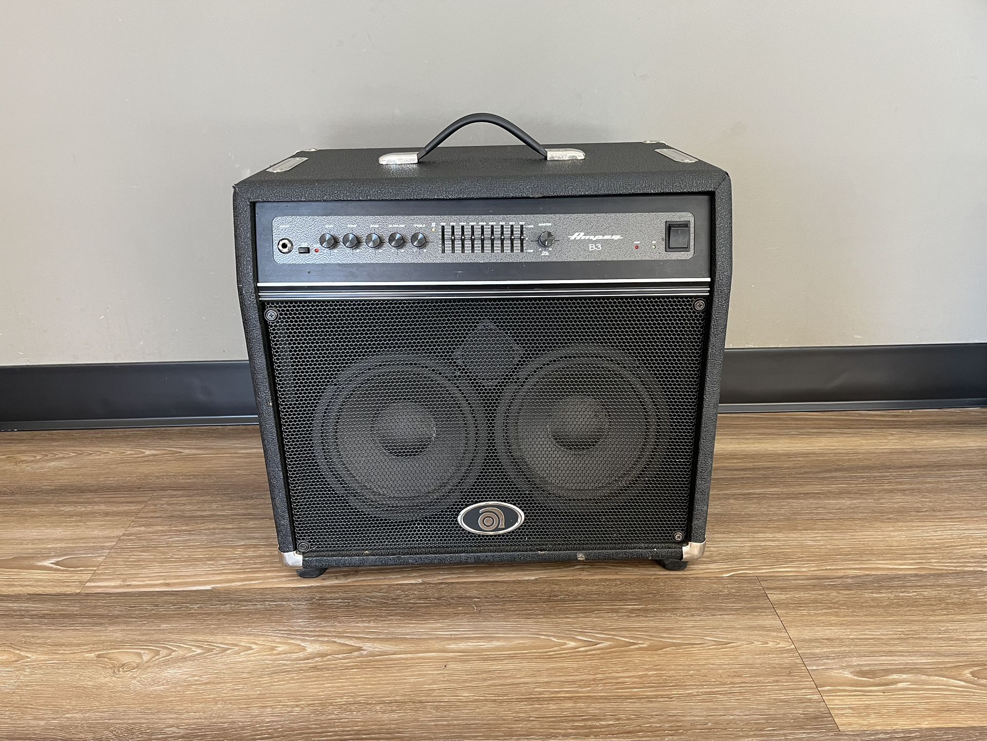 Ampeg B328 bass amp is mostly working condition. Physically in great shape with just normal signs of use. Has some dirty/scratchy pots that could be fixed with an amp service or at home with some DeoxIT D5. 9-band EQ is faulty and needs a speaker cable. Selling because the church has moved to all direct/digital amp solutions. From the manufacturer: In the world of high performance bass amps, Ampeg amplifiers stand alone. In true Ampeg tradition, your new B3/B328/B3158 offers you more power, performance and flexibility than any other bass amplifier in its class. The outstanding features of your new amplifier, features which set it apart from the competition, are listed below: • 9-BAND GRAPHIC EQ: Use as a “second channel” for bass solos, or to shape the sound to your own exacting standards. An independent level control lets you adjust the Graphic EQ volume • BALANCED LINE OUTPUTS: Independent level control. XLR type jack to patch into house consoles, mixing boards, or external power amplifiers • EFFECTS LOOP: Connect your effects here for increased intensity and quieter operation • DRIVE CONTROL: To add harmonics for tube-like overdrive • BALANCE CONTROL (B3158 only): To fine tune the mix between the Biamp High and Biamp Low outputs