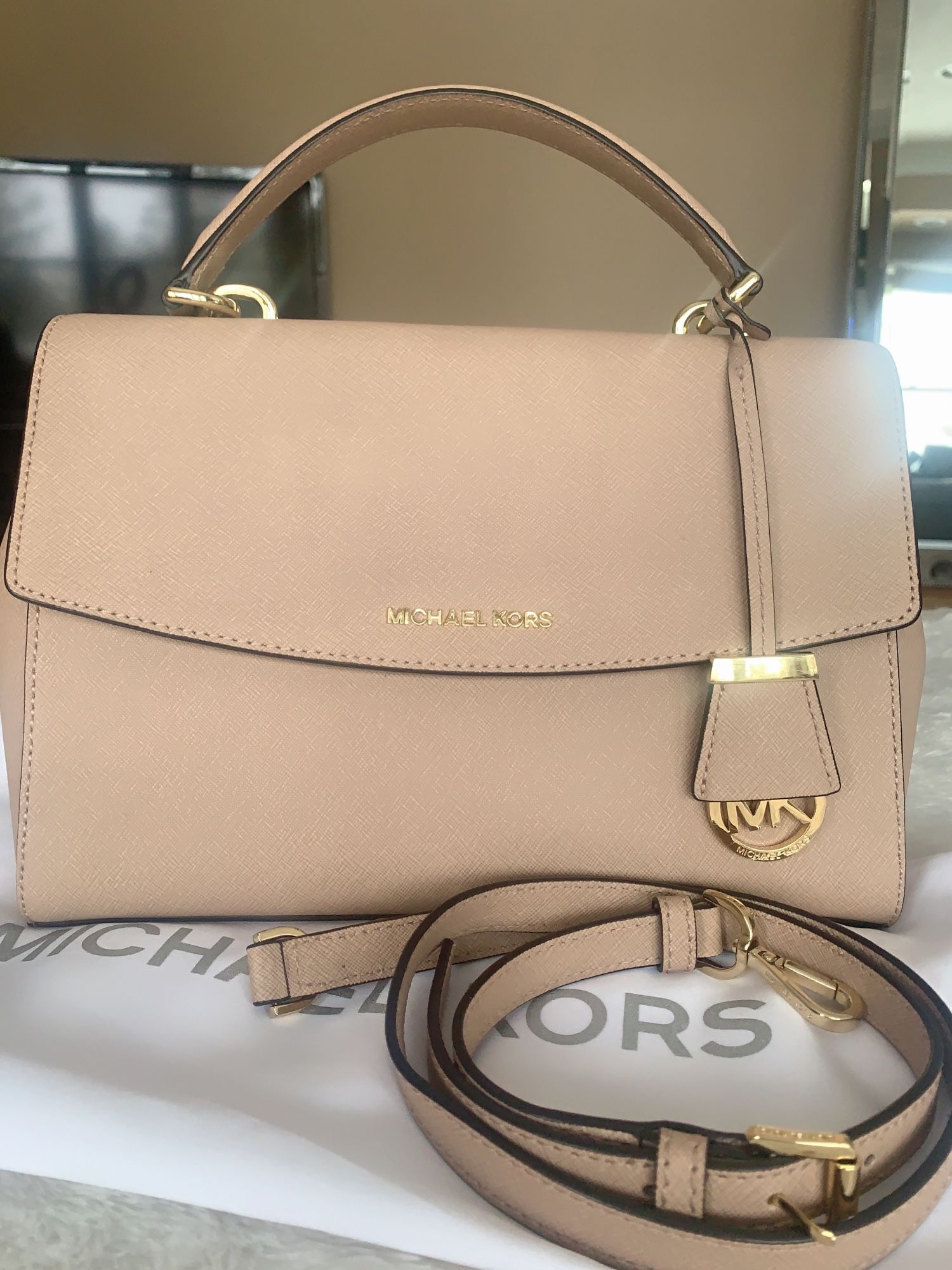 Comes with MK Dust bag Double top handles, 5” drop Adjustable shoulder strap Magnetic flap top closure Brand tag One inside zip pocket One inside open pocket Fully lined 11”W X 8.5”H X 5”D Saffiano leather