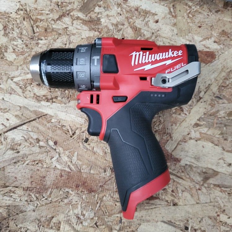 In great Condition Milwaukee M12 FUEL 12V Lithium-Ion Brushless Cordless 1/2 in. Hammer Drill (Tool-Only) Brushless motor delivers 1700 RPMs and 350 in./lbs. torque Lightweight and compact 12-Volt cordless hammer drill Compatible with the M12 System of more than 80 tools This 1/2 in., 12-Volt hammer drill is lightweight and compact with the power to perform a range of applications. Its brushless motor delivers 1700 RMPs and 350 in./lbs. of torque. This portable drill weighs just 2.3 lbs., which is great for overhead positions. It measures 6.6 in. L, helping you access tight spaces with ease. This reliable tool features REDLINK Plus Intelligence to protect it from overloading and overheating. It uses REDLITHIUM battery packs to deliver more work per charge. This power drill includes a 1/2 in. metal chuck for maximum grip and bit retention. It comes equipped with a drill driver and belt clip. 706 bx4. 03, 12