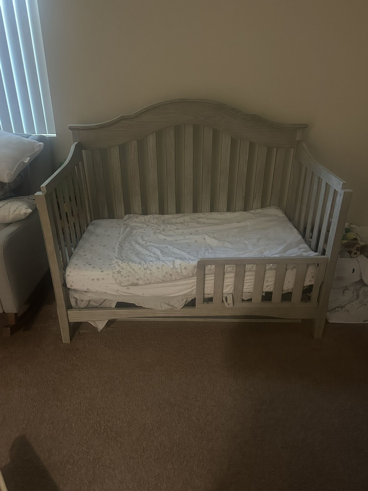 Selling my son’s crib. It is textured limestone color and is in decent condition . Selling with mattress. Asking $150 or best offer