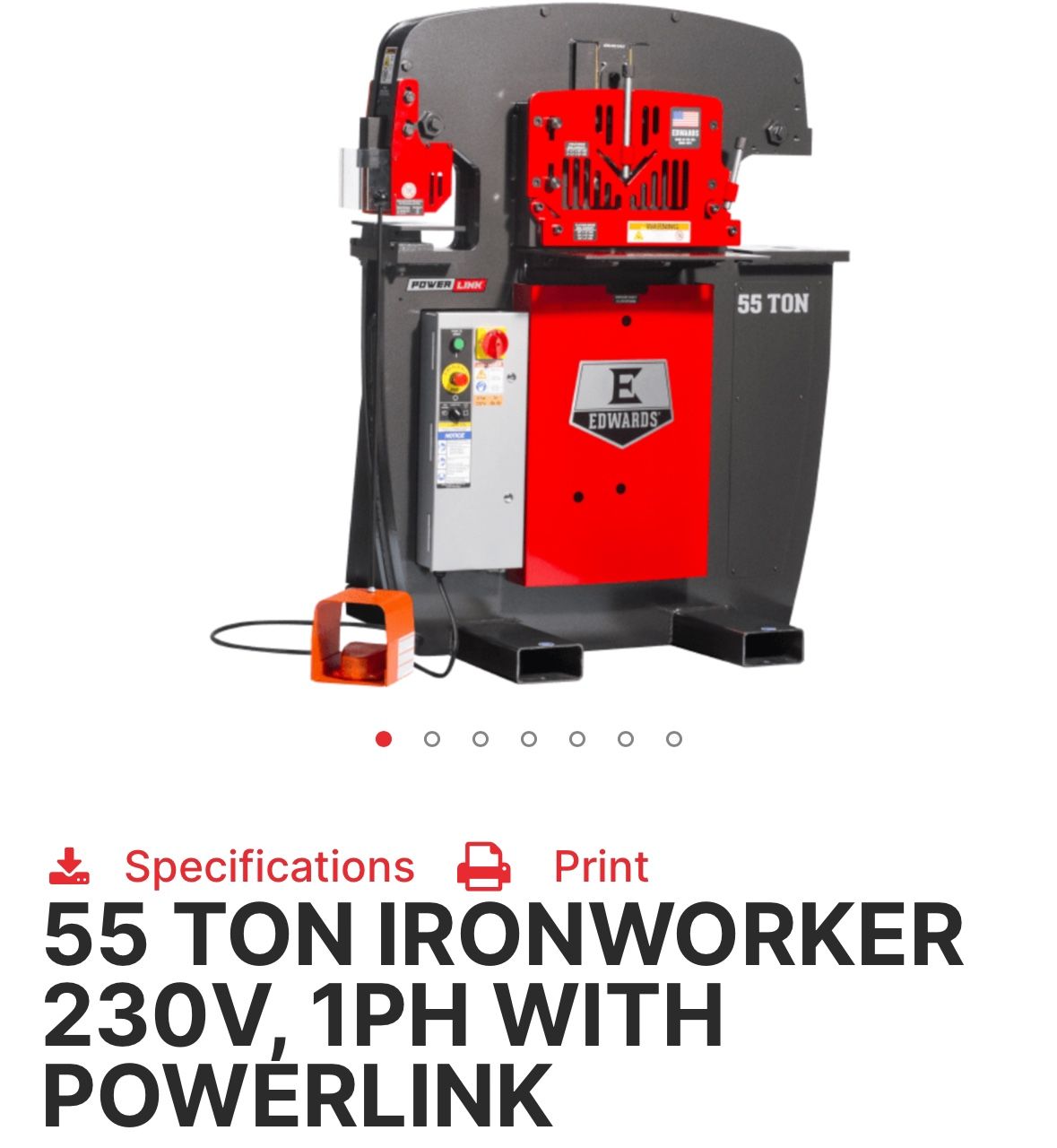 55 ton Edwards. Single phase w/powerlink. 10 inch bender, full punch die set