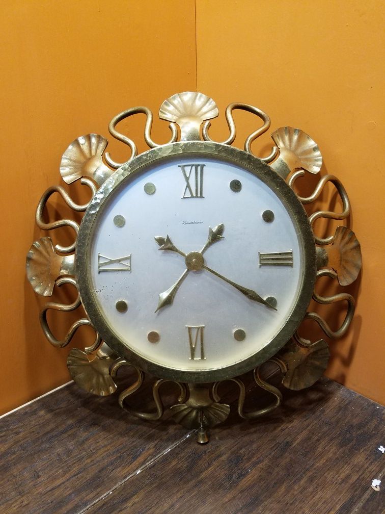 Vintage Remembrance Swiss wall clock gold sea clam shell metal
