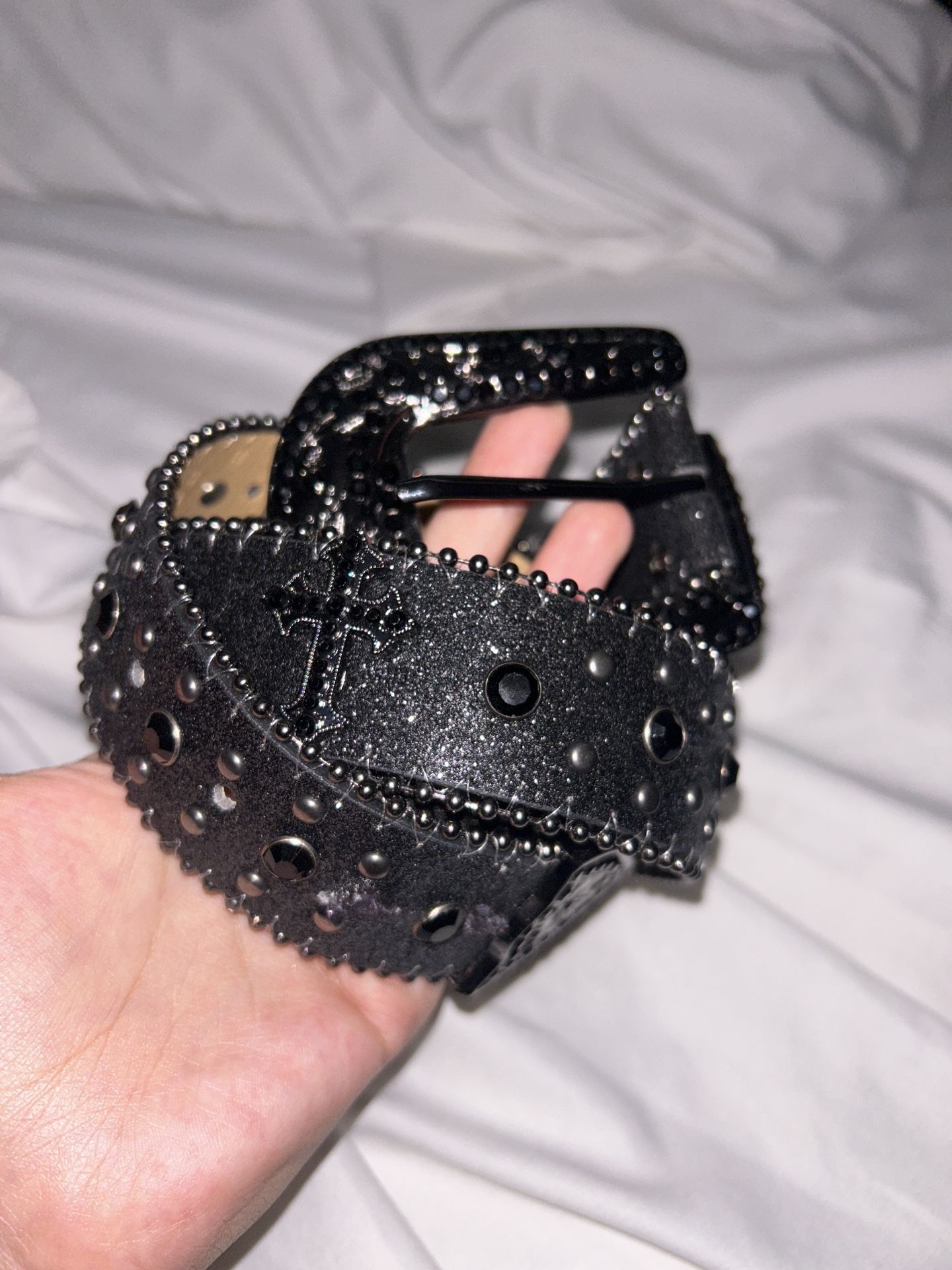 black rhinestone belt with crosses