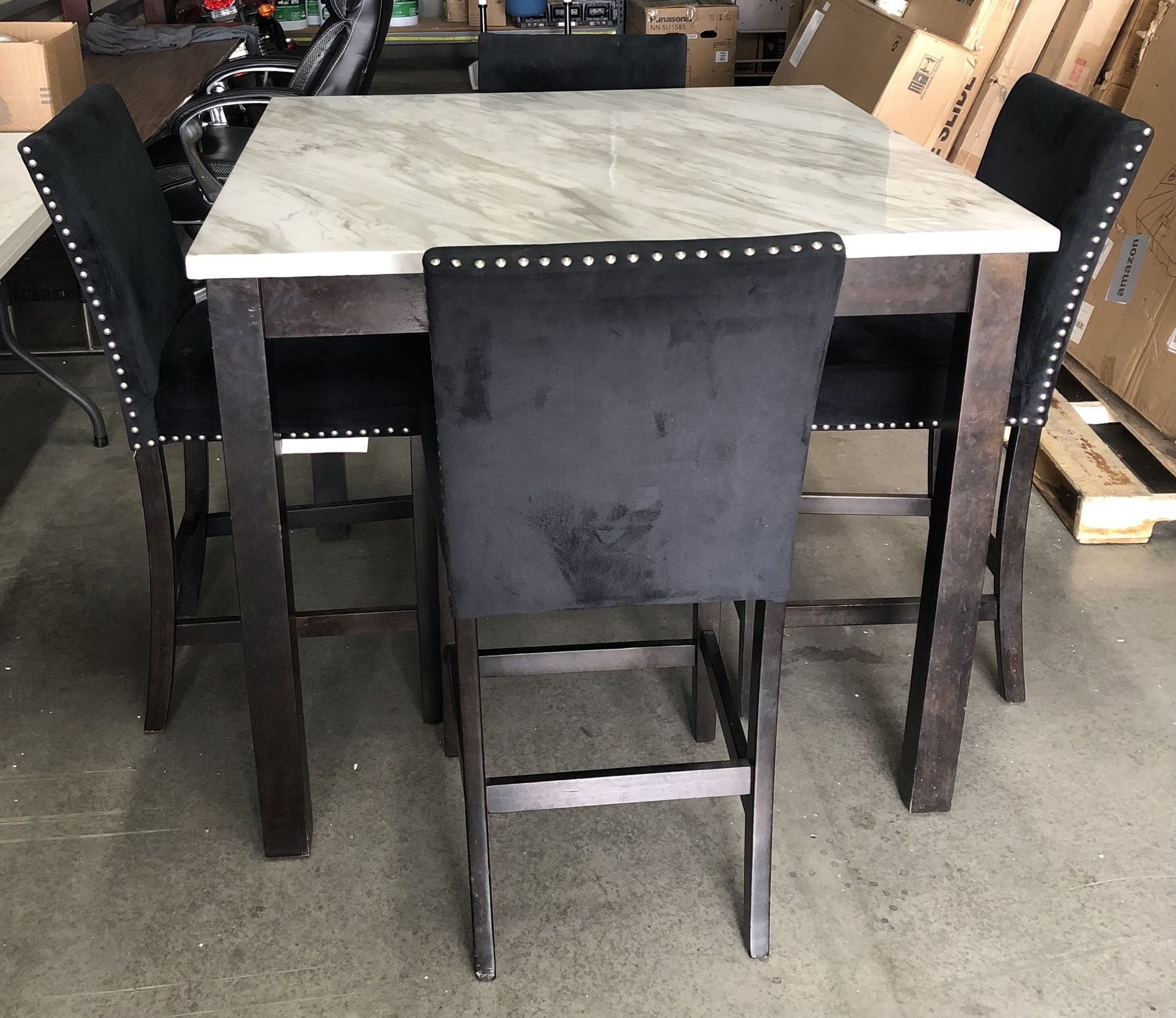 Counter height square faux marble table and four black chairs $100 Pick up in Perris