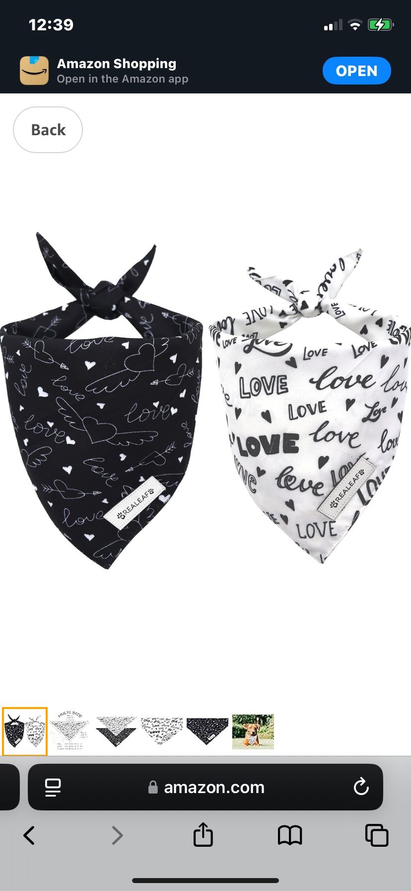 Realeaf Dog Bandana, Triangle Reversible Love Pet Scarf for boys or girls,NWT. Perfect for Just because , a wedding, a birthday party, dog park.