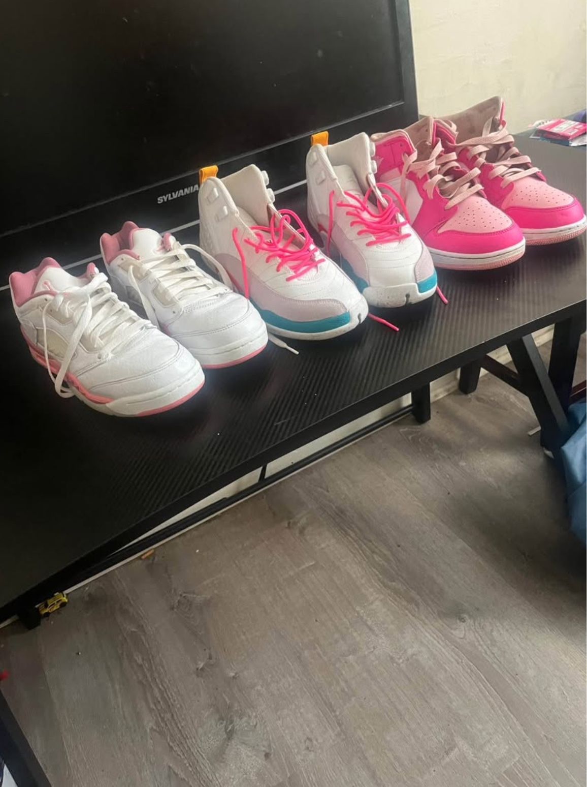 Female shoes pink boots size 7.5 and 3 female jordans size 6 everything for 130.00