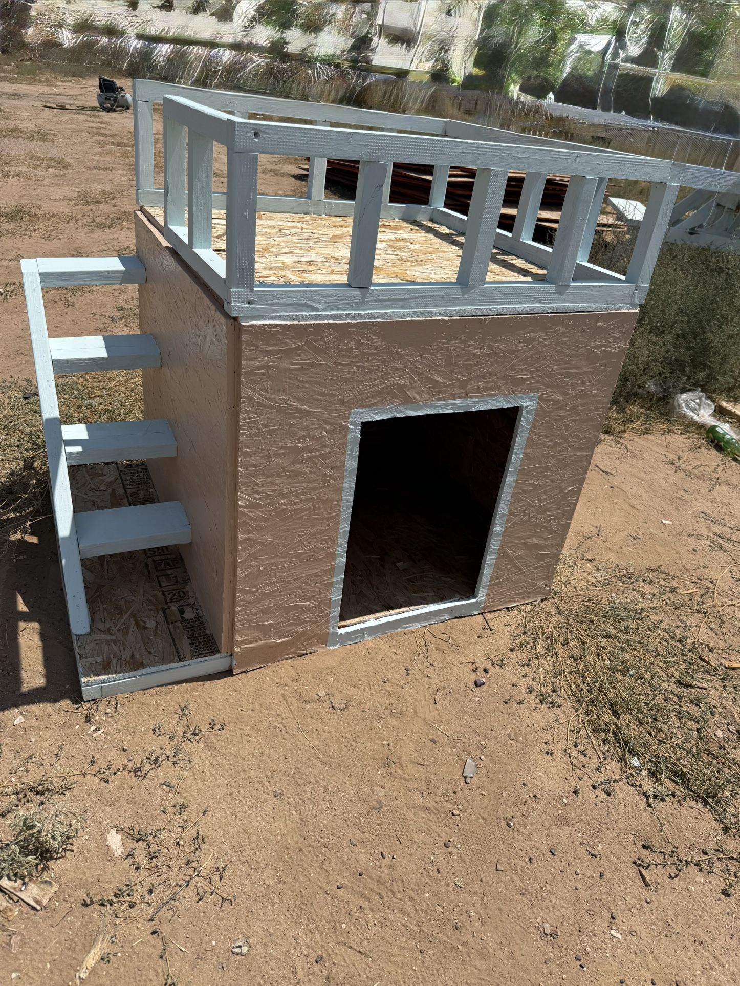 Spacious dog houses available! Perfect for large breeds. Dimensions: 4ft wide, 4ft high, and 5ft long. Delivery available in Rio Rancho and Albuquerque for a $30 fee. Free pickup also available!