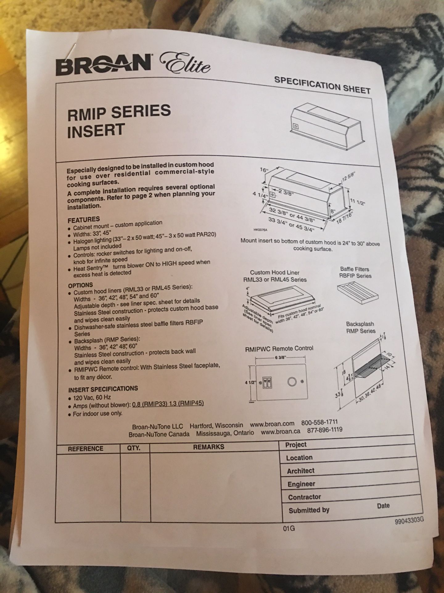 BROAN Elite RMIP SERIES INSERT Rangehood