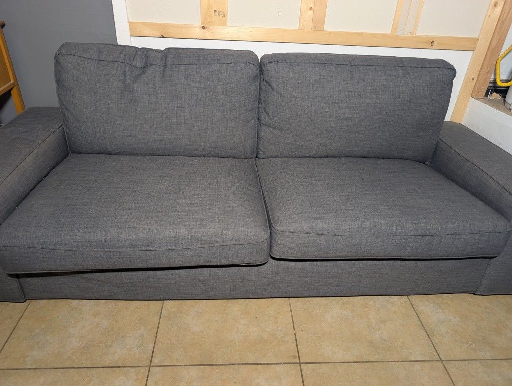 Length 90 in with 3 ft bought this for my bachelor pad but now I'm caught up need to sell it lol