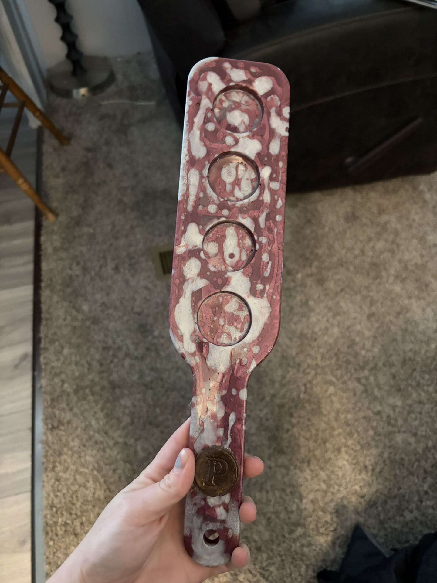 Custom shot glass paddle with marble finish
