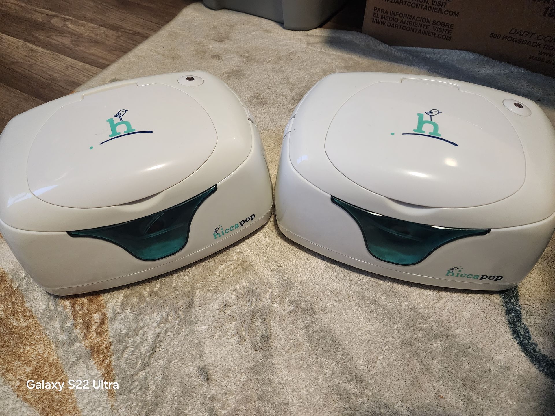 Two wipe warmers available! One for upstairs and one for downstairs, or one for nursery and one for living area! They were used for a little over a year with my baby and both still work great. Keeps wipes warm and moist for a new little ones bum. Two for $25!