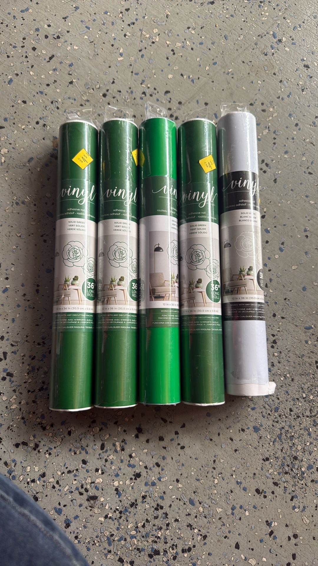 5 brand new rolls of adhesive 12x36 36in long rolls 4 green, 1 white Unopened
