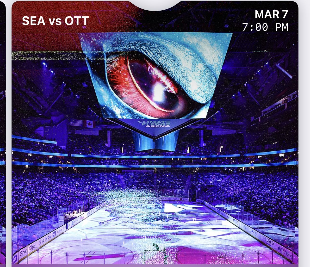 Seattle vs Ottawa Saturday 3/7 7:00 pm 2 excellent seats Section 20 Row E Seats 1 & 2 $190 each