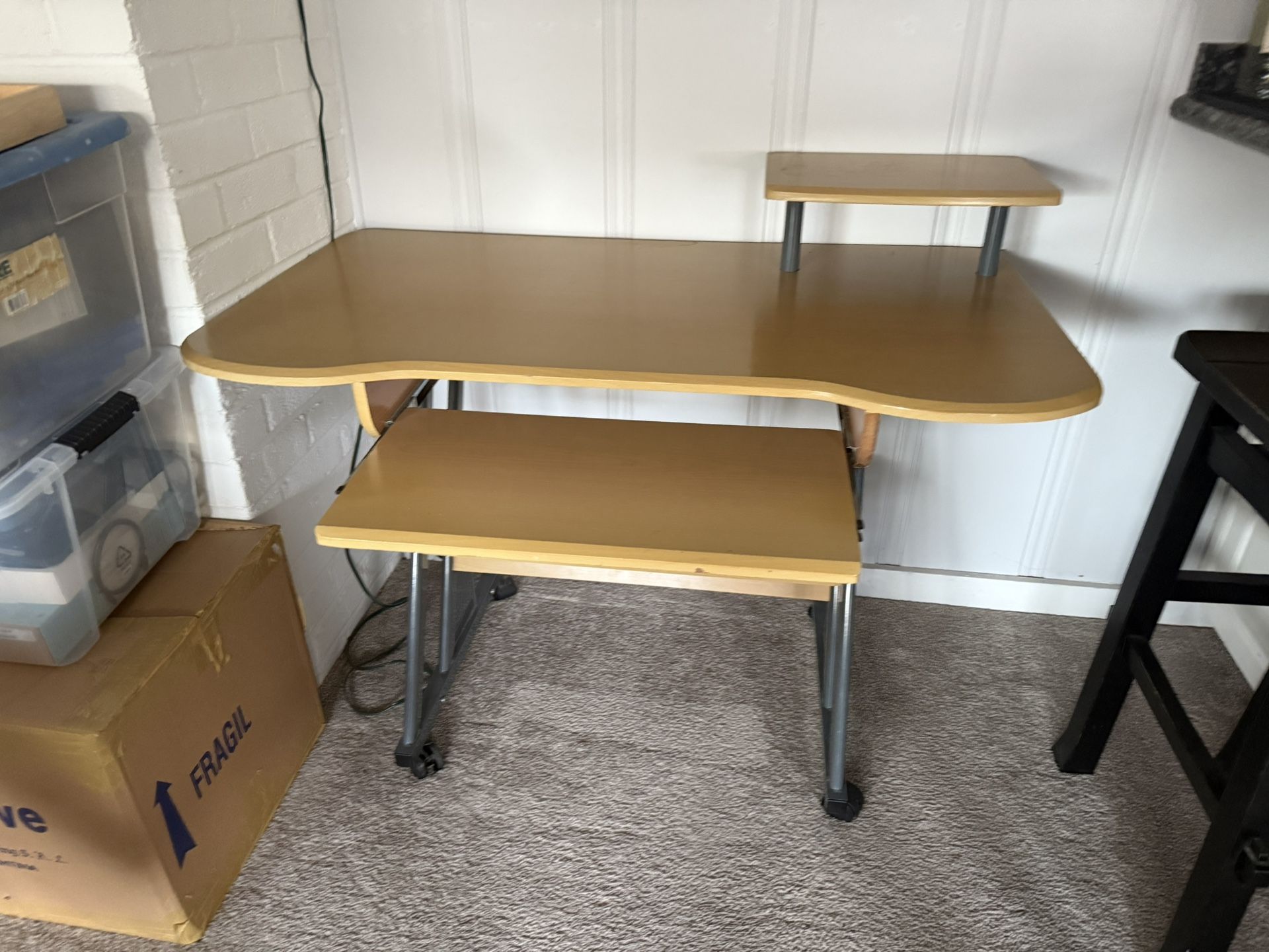 compact, multi-tier computer desk