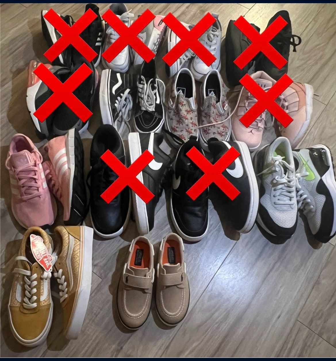 Shoes Vans 1 $30 Flower vans 5.5 $20 Pink adidas 5Y $30 Nike air green/black/white Airmax 4Y $40 new Yellow vans 3Y $25 new Polo 9/2 $15