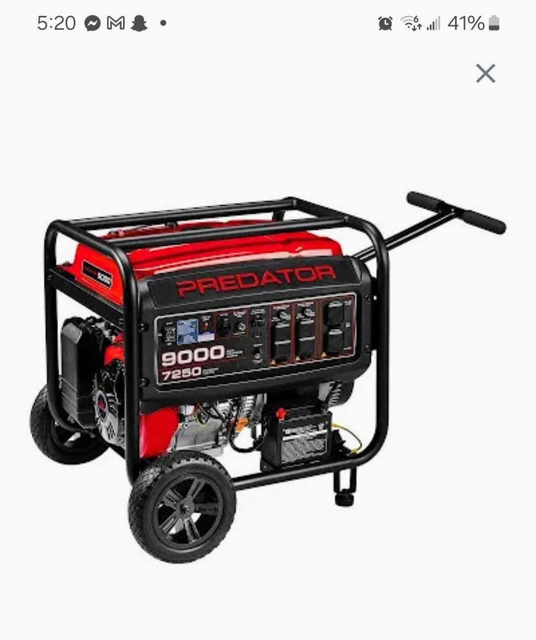 Brand new gas powered 9000 watt predator generator never been used just sitting collecting dust full tank of gas mint condition