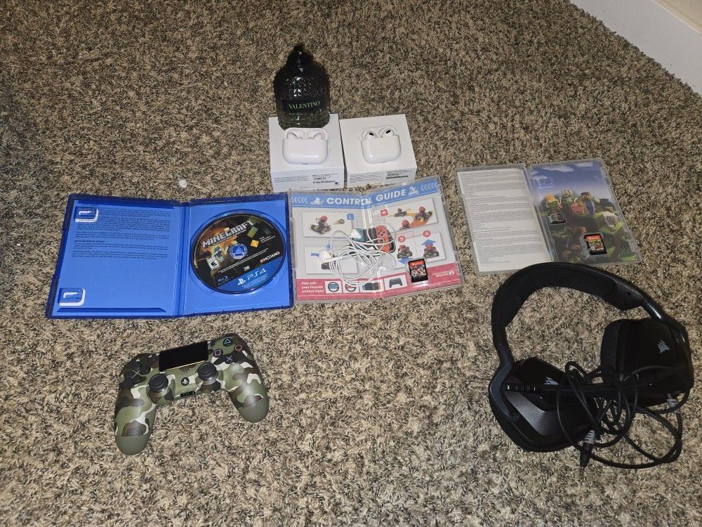 Airpods Pro 2, Airpods Gen 3 Minecraft PS4 Minecraft Nintendo , Mario Kart Deluxe, Razor Headphones PS4 Cameo Controller, Valentino Extravaganza