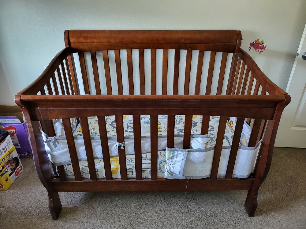 Nice solid wood crib and mattress from a smoke free and pet free home