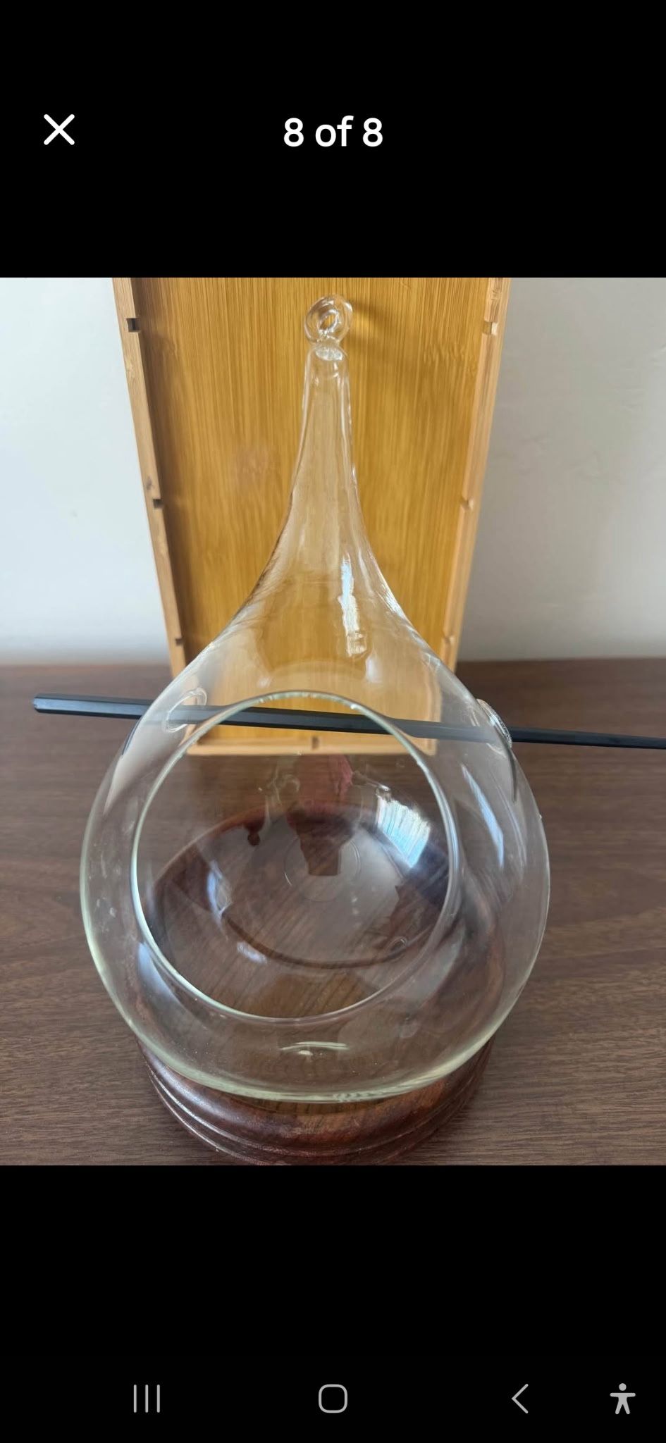Vintage tear drop hanging glass terrarium-clear, seamless, likely hand blown Smooth clear glass with top loop for hanging and wide side opening for styling Ideal for air plants, dried florals, or light layered ritual displays Made in USA Excellent condition-no chips, cracks, or scratches Note: trinkets shown are for display purpose only and will not be included in the final sale Price: $20 OBO Thank you for looking