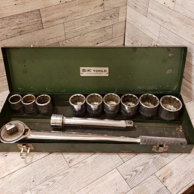 Vintage S-K Wayne 3/4 Drive SAE Socket Set In Metal Case Professional grade
