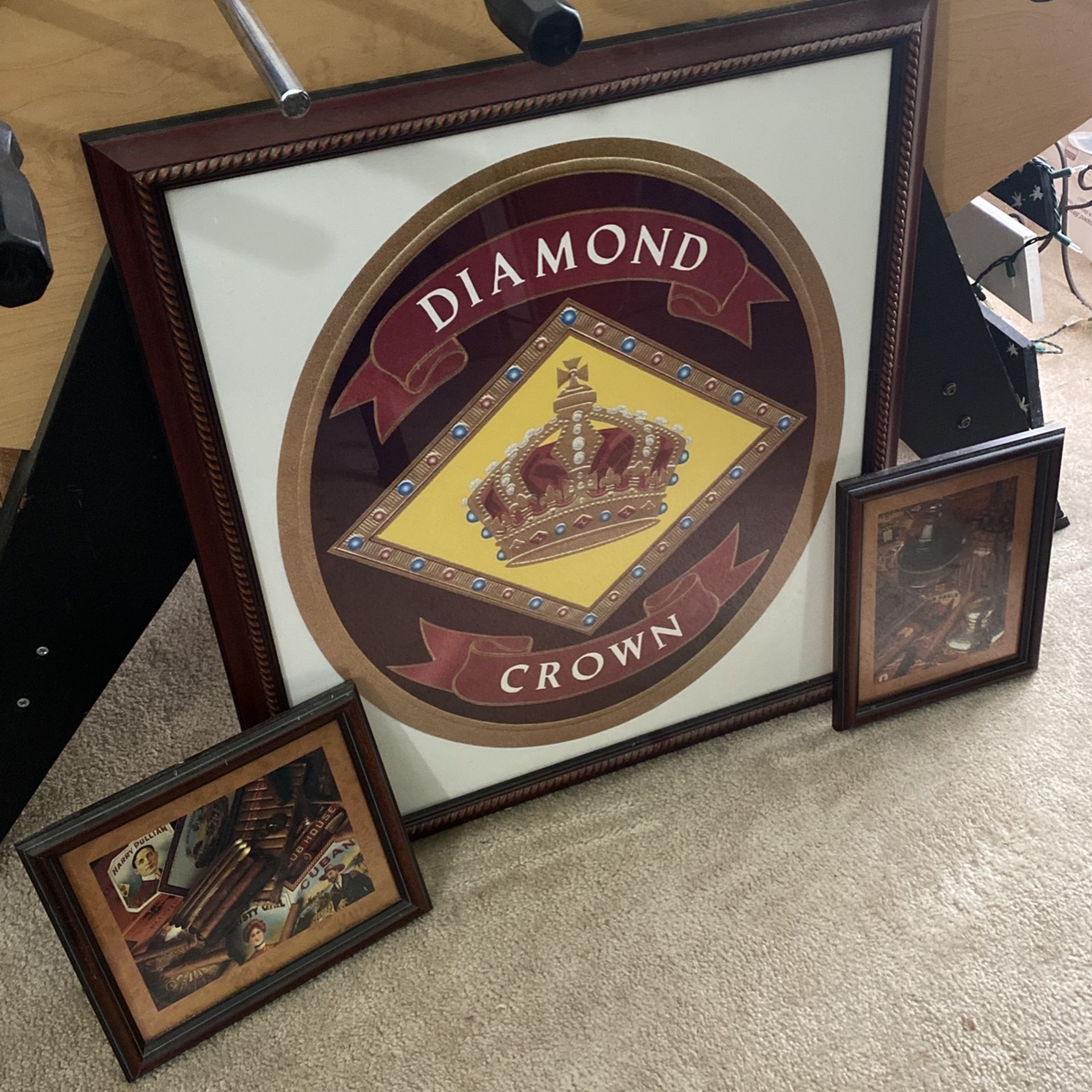 Large Diamond Crown Cigar approx 20x30 in cheery wood finished frame. 2 smaller 8x10 framed cigar photos. These would be great in your man cave, bar, theatre, garage etc. PLEASE READ: ***Must be able to meet in the Odessa/Land O Lakes area, sorry but no delivery, holds or shipping*** Reasonable offers will be considered, especially if you bundle purchase items together. Please view my other great offers including Disney, clothes, Halloween costumes and animated animatronics props, toys, electronics, Christmas and seasonal, household and lots of other items for children too! Click "Follow" I'm always adding new