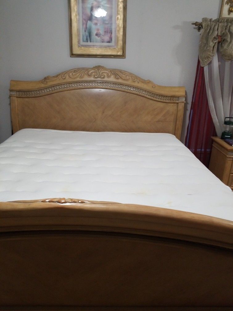 SLEIGH BED WITH QUILTED MATTRESS NIGHT STANDS DRESSER