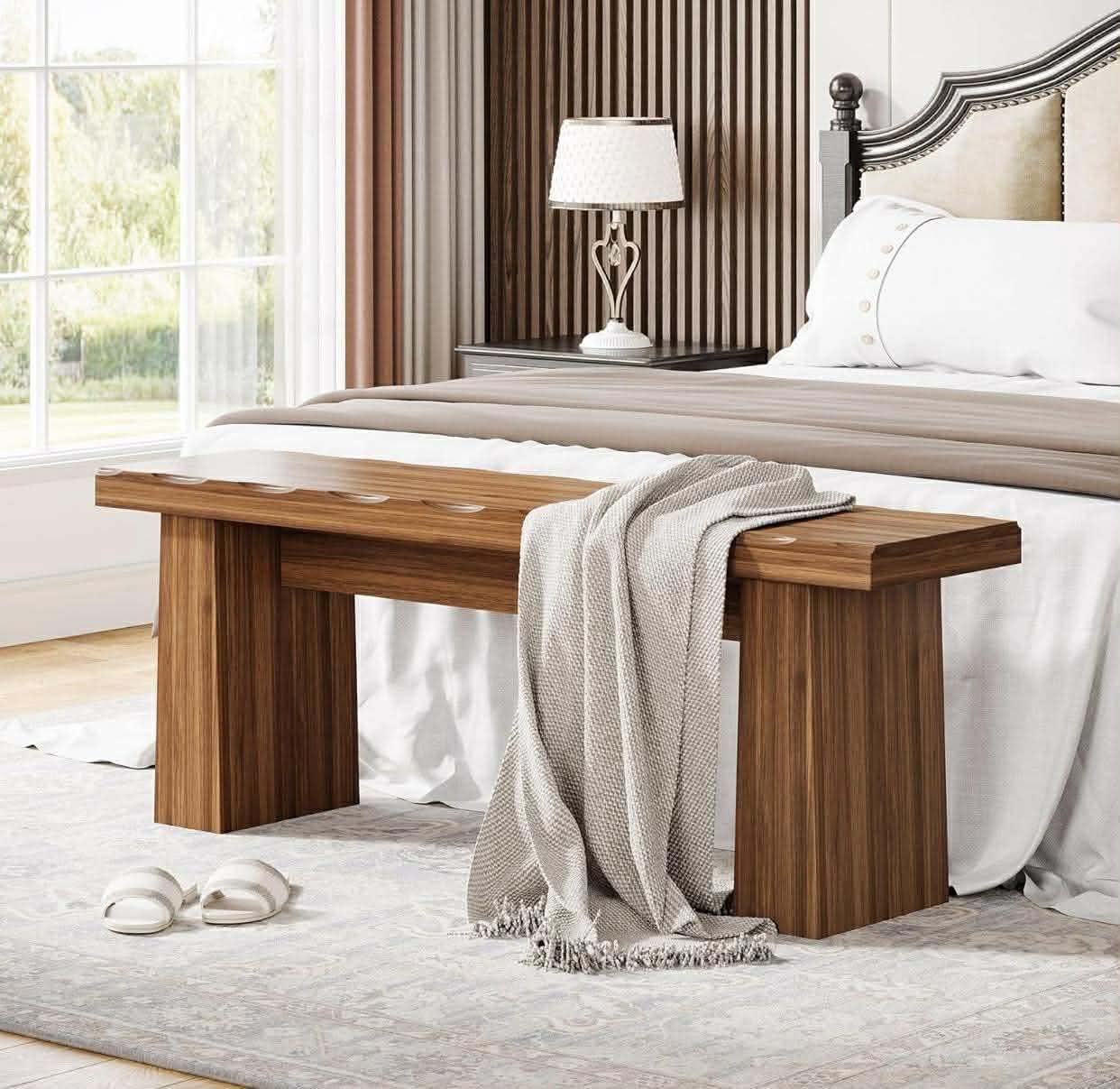 47-Inch Entryway Bench, Farmhouse Wood Bench Dining Table Bench with Sturdy Frame, Easy Assembly (Brown)