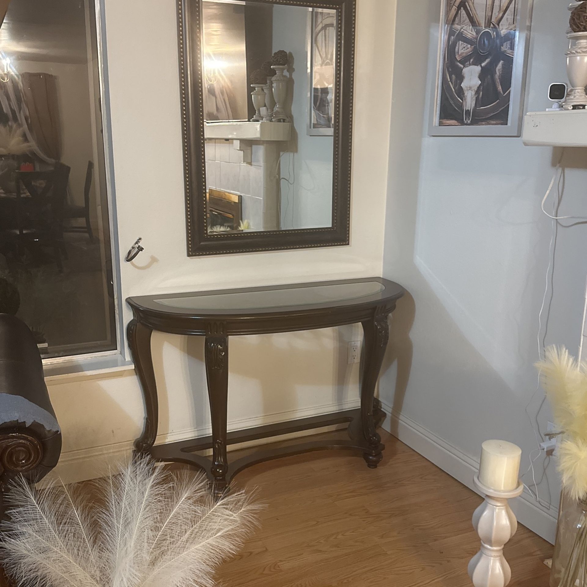 For Sale: Used Mirror and Table I'm selling a beautiful mirror and table set that's perfect for adding a touch of elegance to any room. The mirror has a sleek, modern design with a sturdy frame, and the table is both stylish and functional, offering plenty of space for your essentials. Both items are in great condition with minimal wear and tear. Ideal for anyone looking to enhance their home decor with quality pieces at a great price