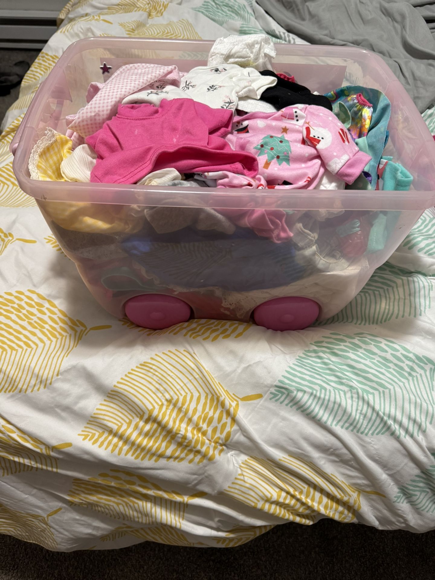 Lots of baby clothes, accessories, and shoes and princess case. 5 bucks for all