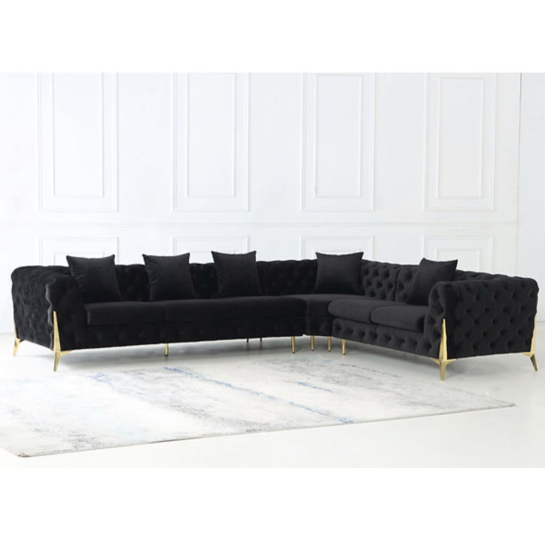 Black Velvet And Gold Legs Deep Button Tuft Sectional Brand New In Box $2,460
