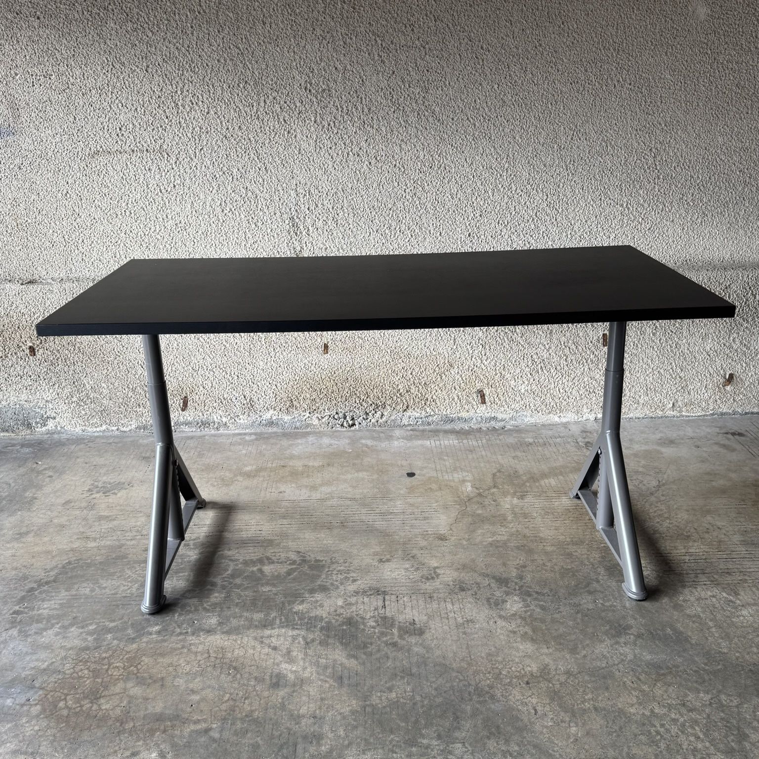 IKEA IDÅSEN Desk/Table (Black/Charcoal Gray) - Legs are adjustable. Tabletop has some wear, but not initially noticeable. Measurements: 63”W (Tabletop). Missing 2 bolts (that attach the tabletop to the adjustable legs), 6 total bolts included, out of 8. Does not affect the table integrity. Comes from a smoke & pet-free home. Pick-up only. Price is negotiable.