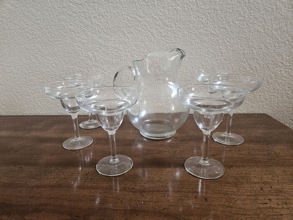 Glass margarita set. Pitcher and 6 glasses. New out of box. Never used. Pick up Santee