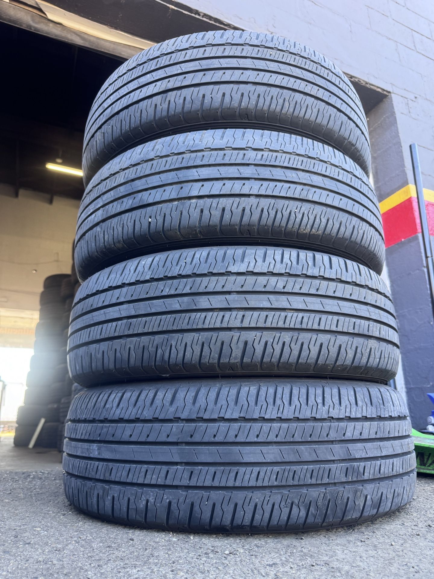 Installation and balance included in price. Set of (4) 225/60R18 Dunlop GrandTrek model all season suv tires. Even wear and good tread life on all 4 tires. Shop located at 817 St Charles Street, Elgin IL 60120.