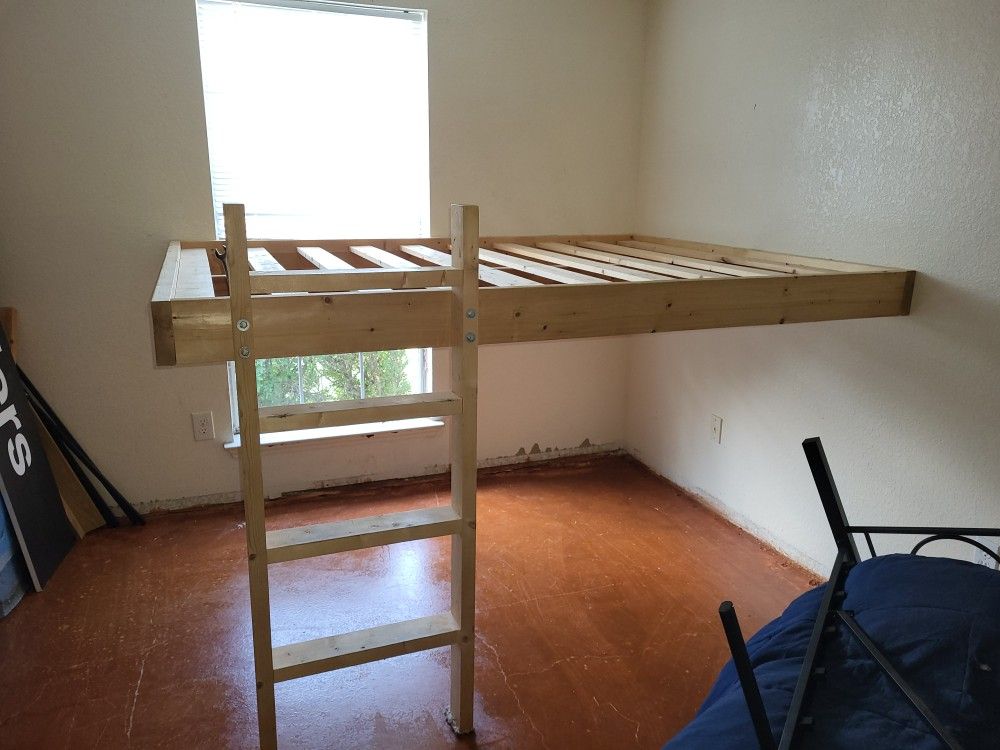 Wooden Loft bed frame. Queen size Like new with Wooden screws