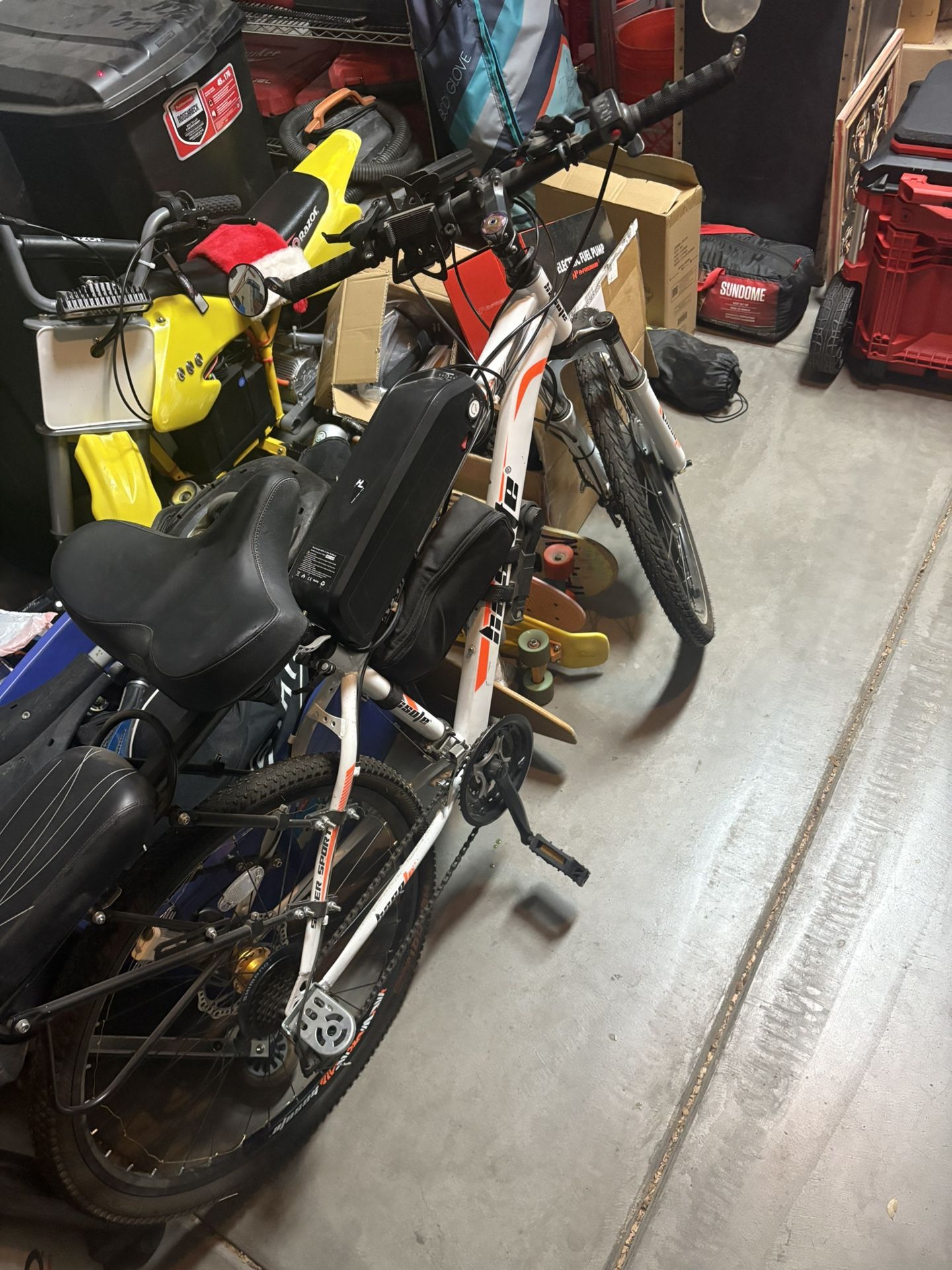 48v 1000w motor in great condition 48v 13AH battery(missing charger) Rear wheel is flat but comes with additional wheel