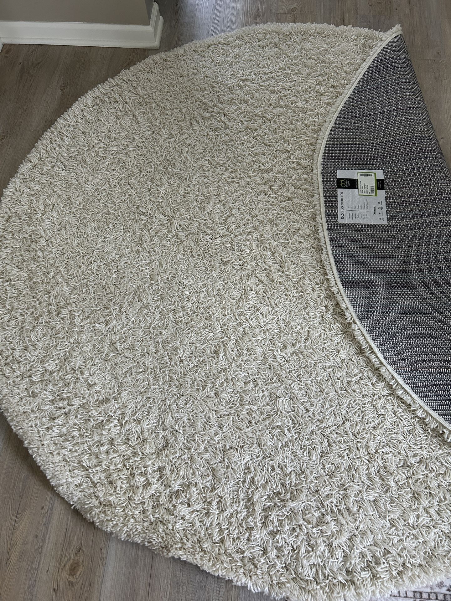 6’ x 6’ round, cream color area rug. Gently used, non smoking, no pets or children home, no shoes in the house home. Original cost of rug was $102.99. This is local pickup.