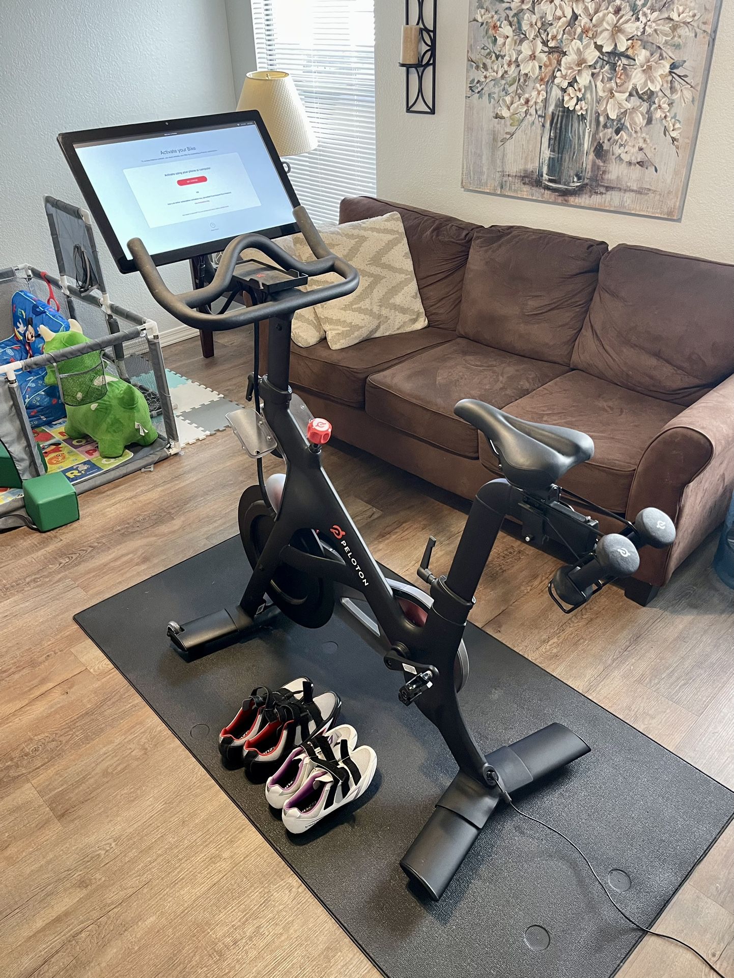 Family is growing and need the extra room. Peloton Bike in perfect working condition. Wasn’t used nearly as much as my wife will tell you. Normal wear and tear on the cleats. Includes: bike, charger, peloton mat, 3lb weights, men’s 13 and women 10.5 bike shoes (near new condition). $400 obo
