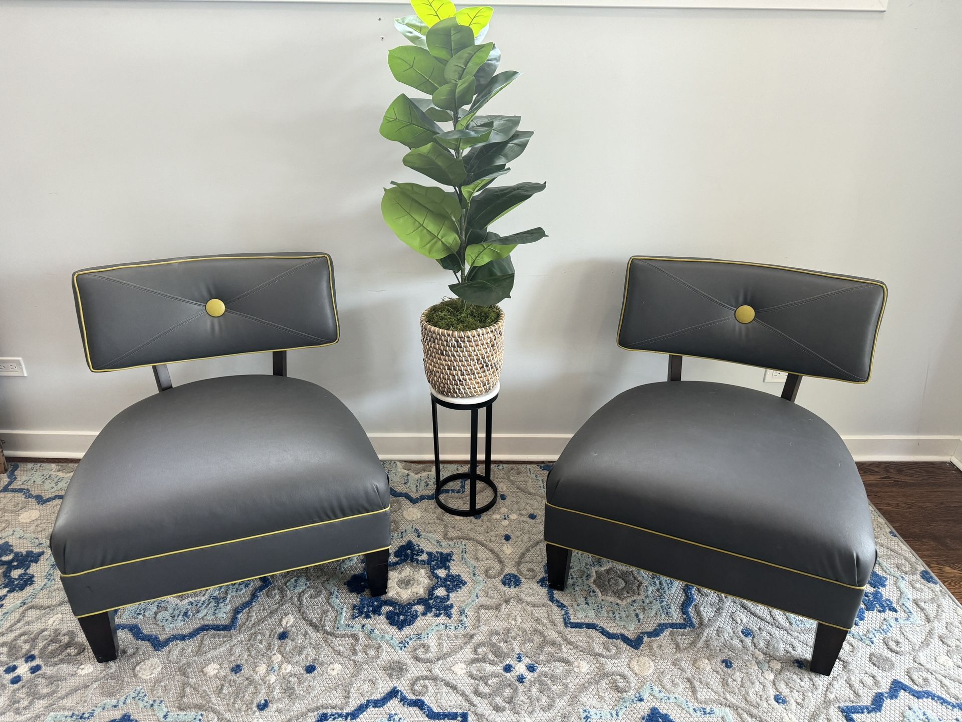 Custom make chairs from Sweet Pea Interiors. Super nice cushy. Thick leather. 30x30x30. Message me only if you want them. Like brand new. Rarely sat in and 0 wear. 100 each or 175 for the pair